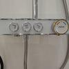 Крутая стильная душевая от большого китайского производителя Arrow. Панель спереди из белого стеклопластика, самое интересное кнопки снимаются и легко чистить душевую, а это всегда проблема. Скругленный дизайн понравится дизайнерам. Очень интересно сделана золотая ручка термостата. Она не должна смущать в душе самое главное регулировка температуры, а золотая ручка поможет в мыльной воде быстро сориентироваться, что крутить. Начинка хорошего качества Arrow используют французские термостаты известного производителя.