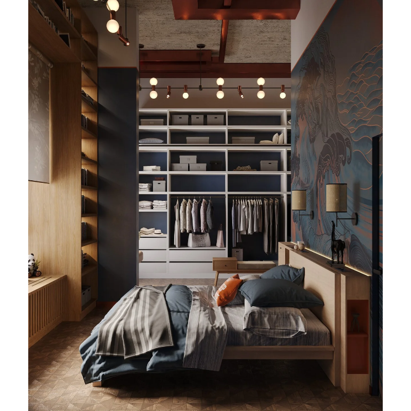 Суть: Индастриал для адептов технологий. Эстетика дата-центров и научных лабораторий. Этот нео-индастриал 2026 отлично подходит для современных апартаментов.