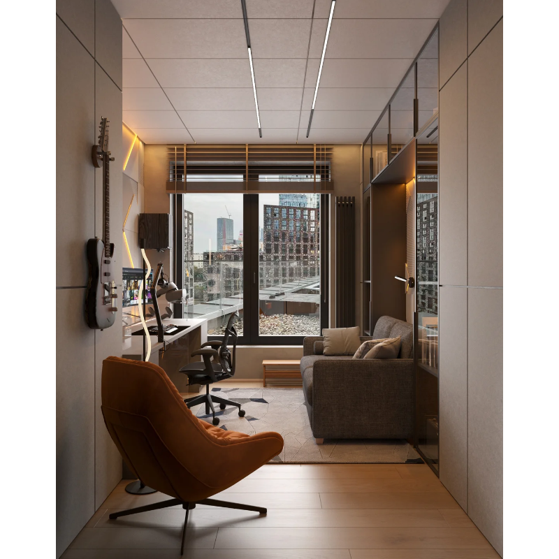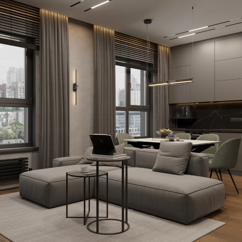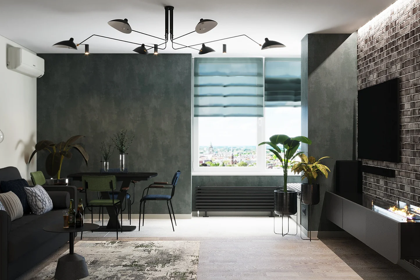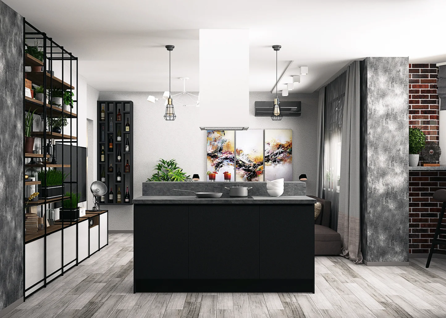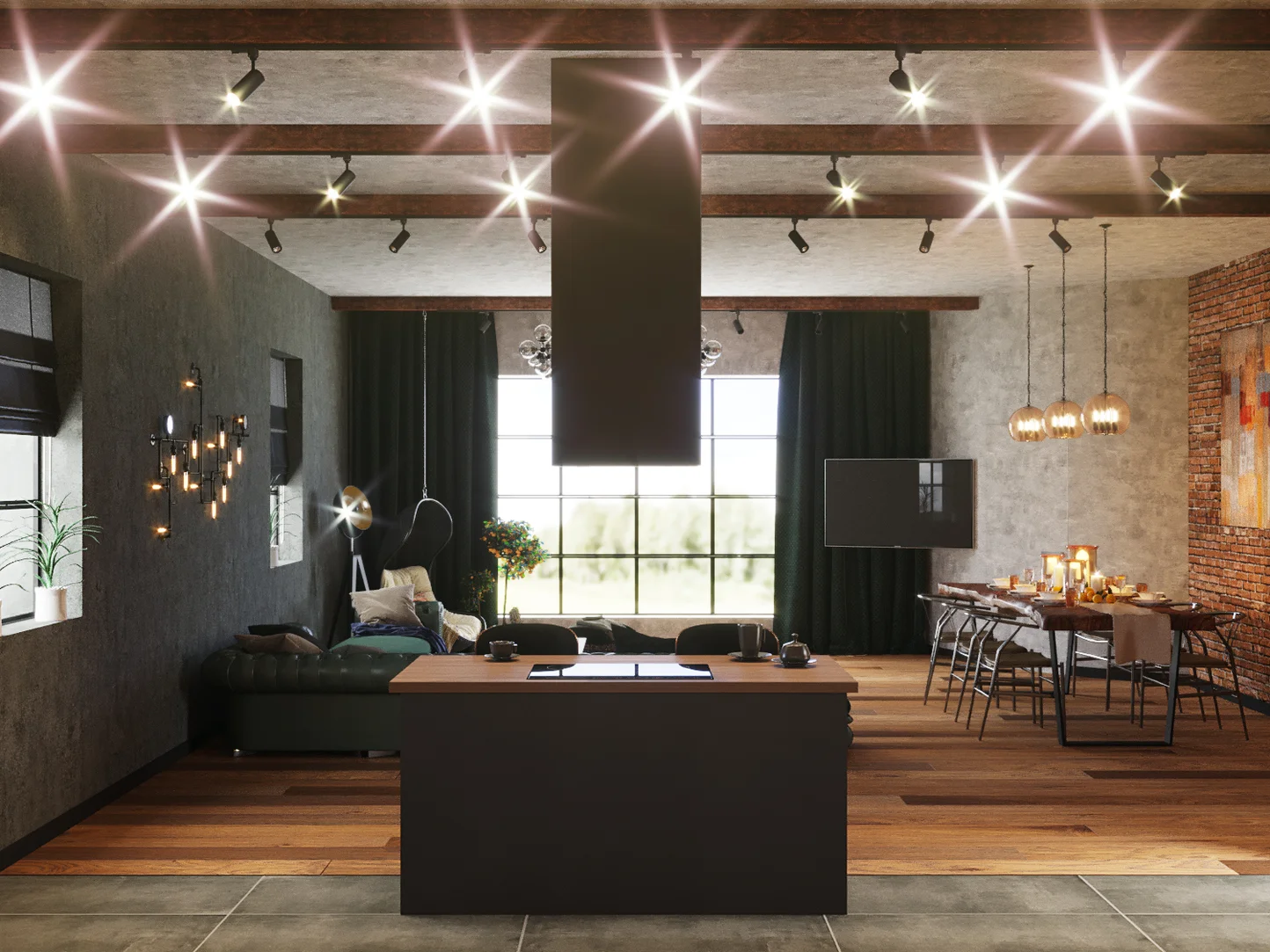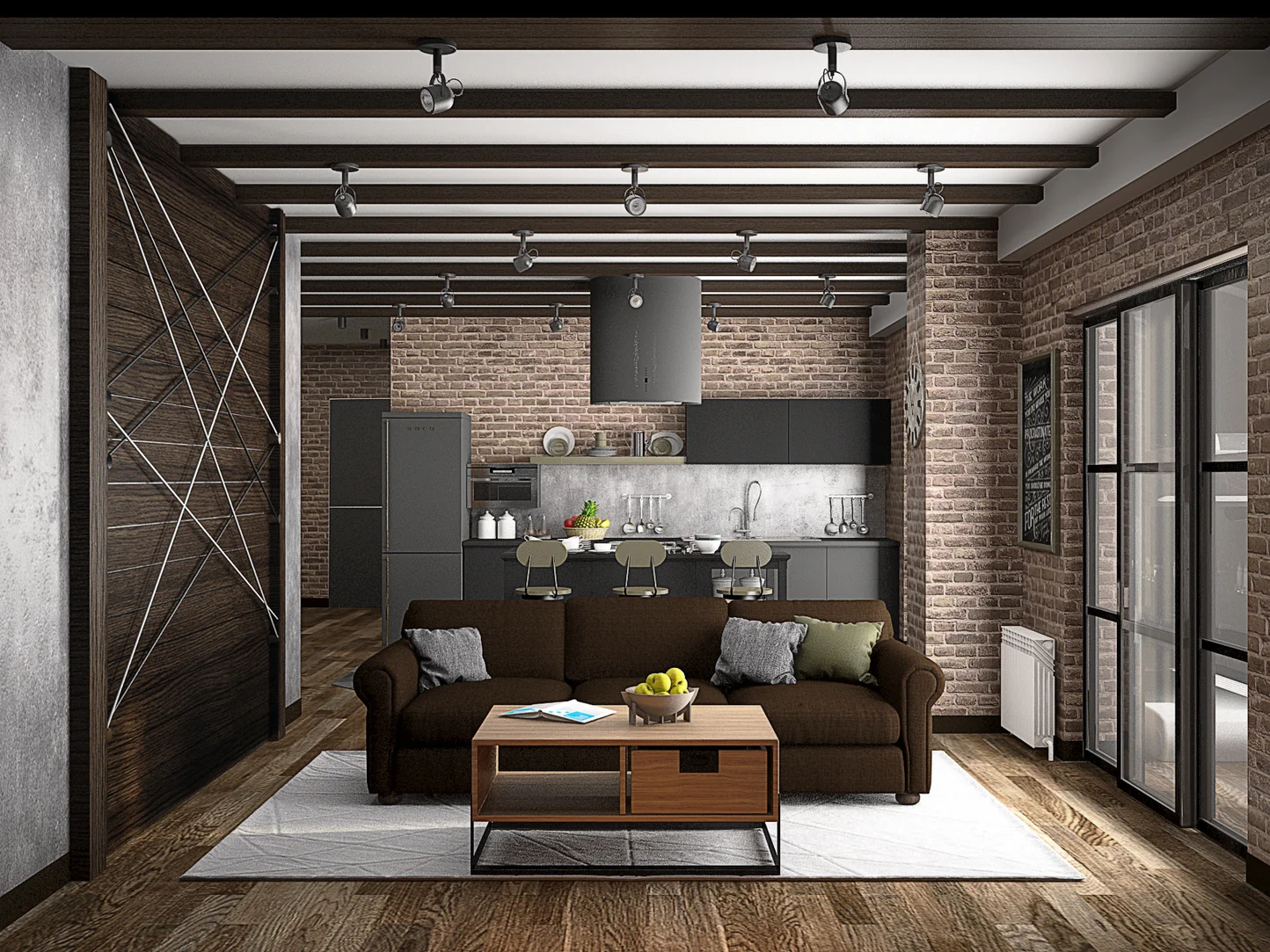 Суть: Классический лофт, переосмысленный с учетом энергоэффективности и комфорта. Идеально подходит для тех, кто хочет создать лофт в типовой квартире без потери функциональности.