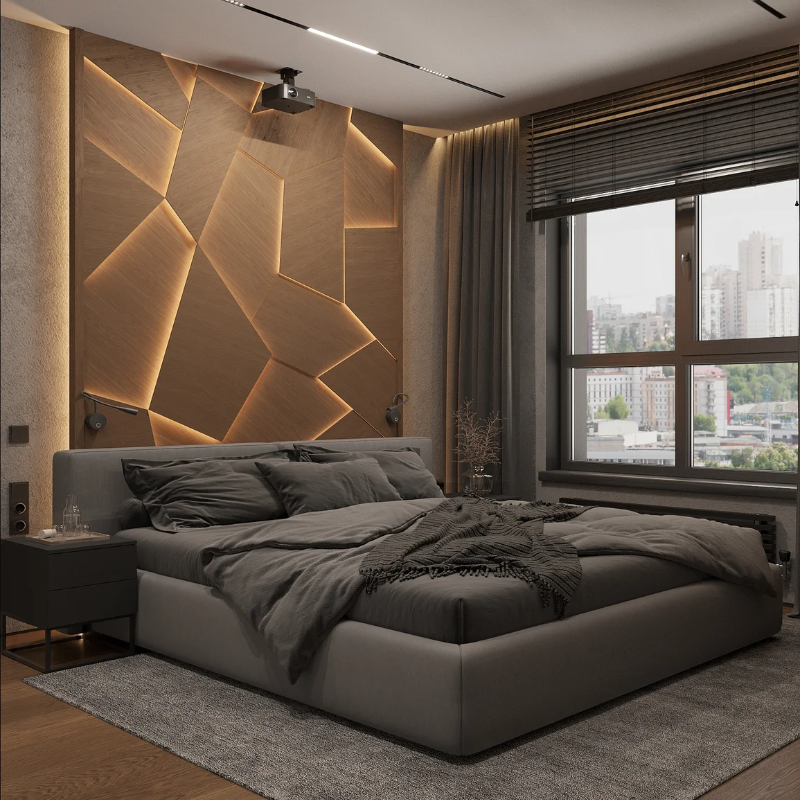 - Обязателен теплый свет (2700-3000К) для создания уюта