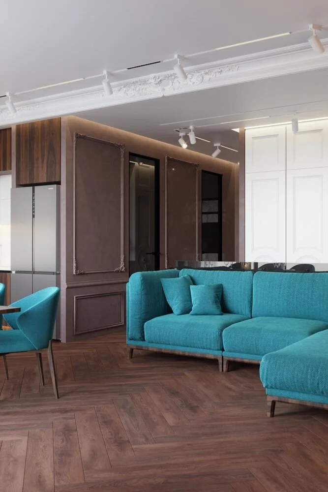- Зонирование светом: Используйте умные световые сценарии. Разные группы светильников визуально разделяют кухню и гостиную.